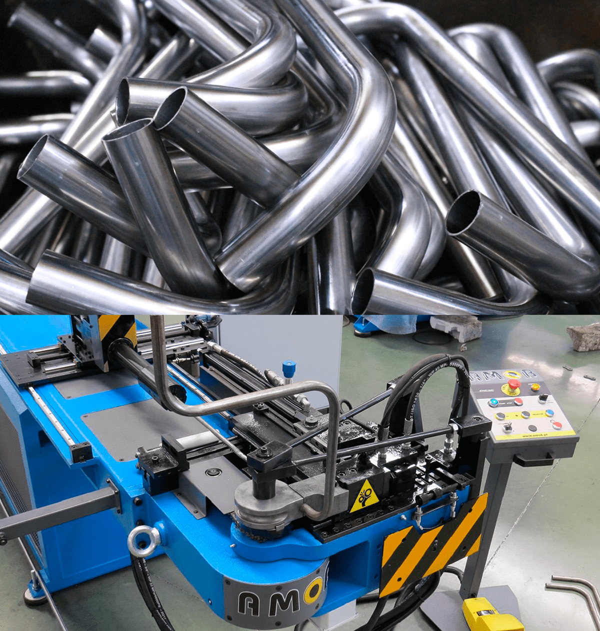 Dobladora de tubos de 4 metros. Tecnología CNC, con Capacidad de doblar tubos hasta 42mm de diámetro y 2mm de espesor.